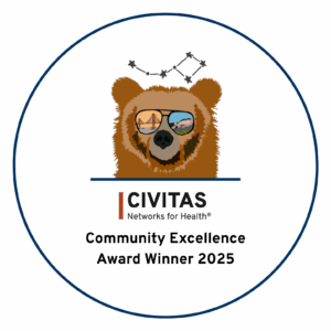 - Right circle: At the heart of the HUB, individuals and caregivers connect with Navigators linking them to the services and resources they need to impact their health and well-being.